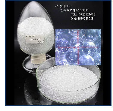 圖中有顯微放大讀數(shù),表面看是白色粉末狀,40倍放大顯現(xiàn)透明玻璃珠形狀。色澤判斷質(zhì)量,越白越優(yōu)質(zhì)。反之,越暗噴砂出來的產(chǎn)品也越暗。